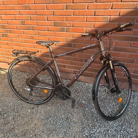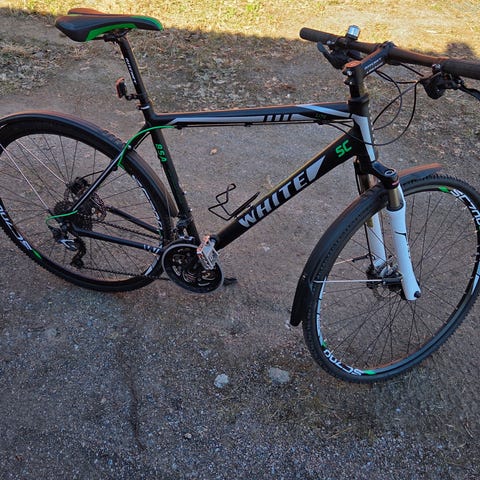 White SC Trainer poikien/miesten hybridipyörä, 28” renkaat, 17” (M) runko. Käytön jälkiä rungon maalipinnassa mutta ehjä ja toimiva laite, keväthuolto ja säätö tehty. Lokasuojia löytyy tarvittaessa kaupan päälle.