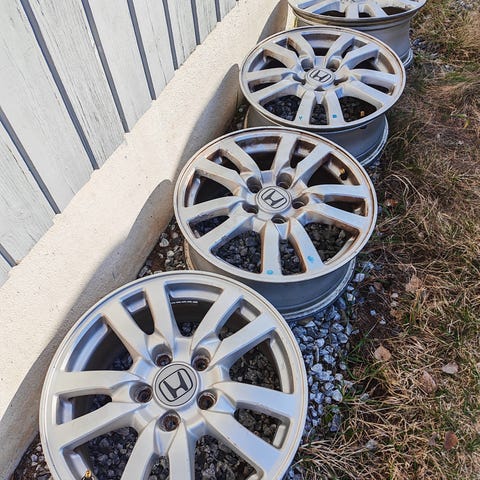 Hondan 17” vannesarja -07 Avcordin alta. Internetin mukaan 5x114.3 ja kr 64.