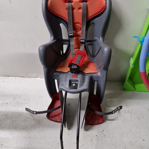 Siisti lastenistuin polkupyörään tarakkakiinnityksellä.