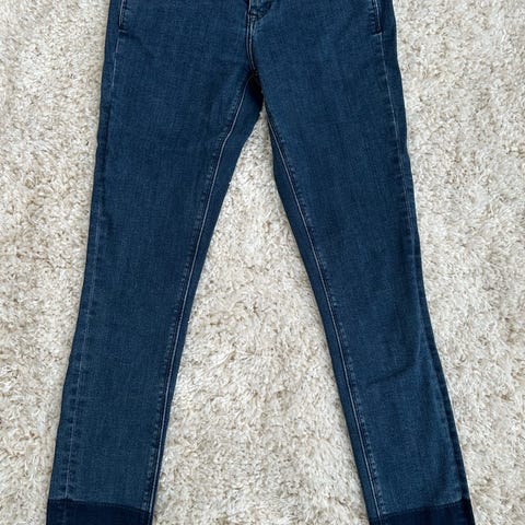 Hieman vajaamittaisella lahkeella joustavat Gustav-merkkiset farkut. Koko 36. Lahkeessa nauhalla raidoitus. Lahkeen pituus noin 92cm. Vyötärönympärys noin 78 cm.