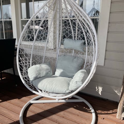 Elämää nähnyt rottinkinen riippukeinu. Valkoiseksi maalattu, kolhuja on. Vain nouto Ilmajoen Ahonkylästä. VARATTU 18.4 SAAKKA