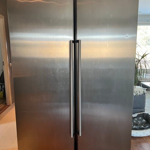 Jääkaapi ostettu Gigantilta vuonna 2023 1600€:lla. Lasku löytyy tarvittaessa. Mukana tulee myös vedensuodittimia. Siinä on 640 litran kokonaistilavuus sekä NoFrost-, SpaceMax- ja All Around Cooling -tekniikat.