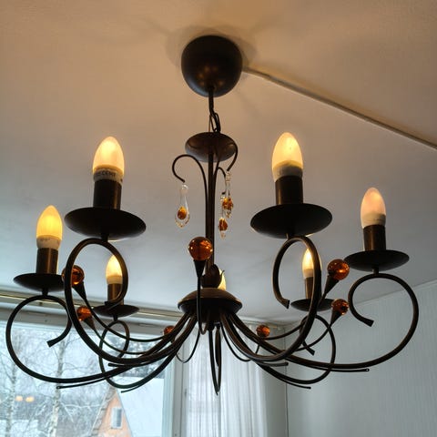 Tummanruskea valaisin. Kaikin puolin ehjä ja siisti. Pistotulppaliitäntä.