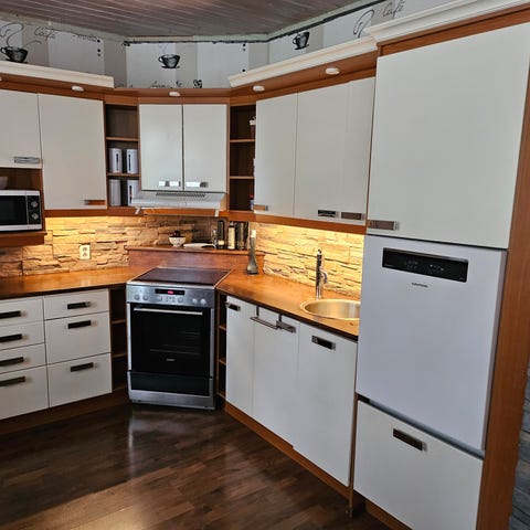 Myydään hyvässä kunnossa oleva keittiö, ala ja yläkaapit sekä taso. Ostaja purkaa keittiön itse. Hinta 650€( ilman kodinkoneita).