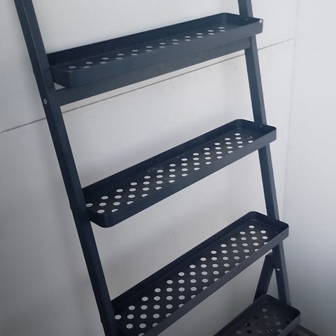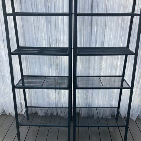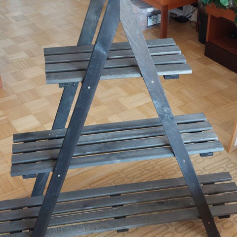 Myyntiin kaksi ylimääräiseksi jäänyttä mustaa hyllyä/kukkatelinettä, ulkokäytössä olleet, jonkun verran käytön jälkeä (en ole pessyt/puhdistanut talvisäilytyksen jäljiltä), mutta edelleen käyttökelpoiset