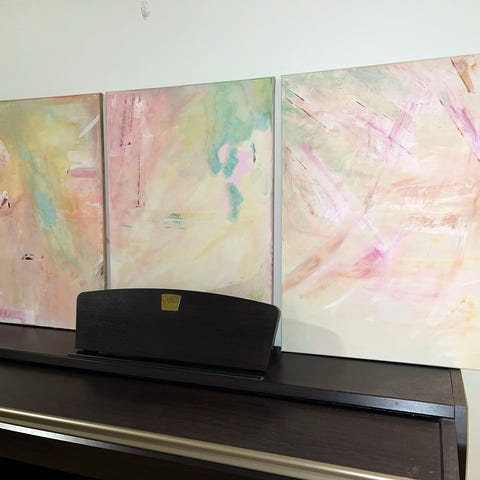 Teos esittää abstraktia muotoa ja värejä.