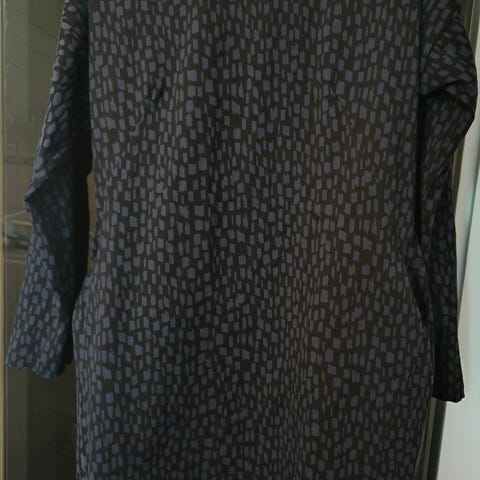 Noshin naisten mekko, koko M. Kirjava kuosi tummalla pohjalla. Materiaali 100 % puuvillaa. Mekossa on pitkät hihat ja vyötäröllä nauha, jolla istuvuutta voi säätää. myös taskut löytyvät. Sopii arki- ja vapaa-ajan käyttöön.