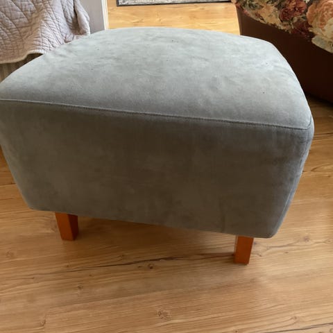 Juuri valmistunut jalkarahi / jakkara. Uusi, käyttämätön. Yksityiskohtana kaksi taskua. Kulutusta kestävä, tukeva kangasverhoilu. Halkaisija 54cm, korkeus 32cm. Nouto Kauppakatu 63.