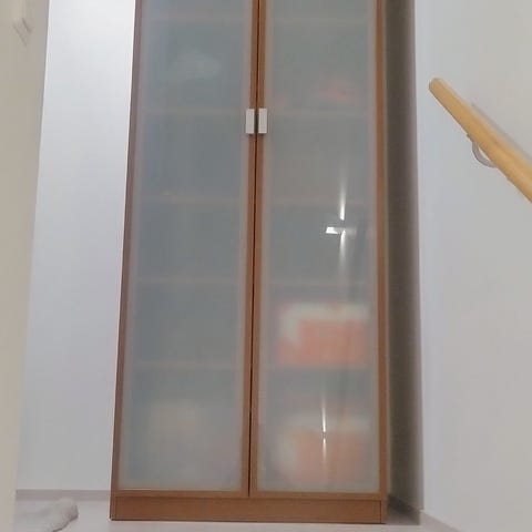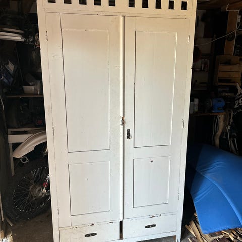 Jalat kärsineet betonilattialla vetämisestä (kts. kuvat) muutoin kunto moitteeton. Hyllylevyt tehty itse mäntylevystä.