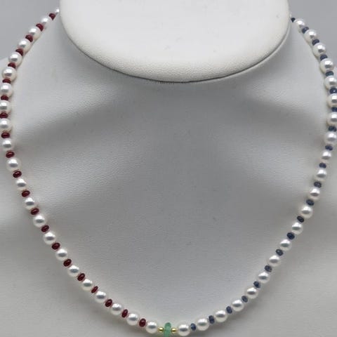Kaulakoru - 18 kt. Keltakulta Helmi - Smaragdi