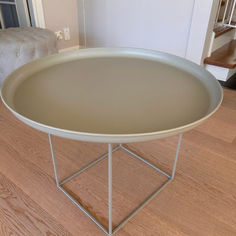 Sisä- ja ulkokäyttöön sopiva Houe laatupöytä. Meillä palvellut sohvapöytänä. Erittäin hyvässä kunnossa. Materiaali: Jauhemaalattu teräs ja alumiini. Hieno Design huonekalu. Halkaisija 57,5cm ja korkeus 41cm. Suunnittelija Henrik Pedersen ja pöydän ovh 199.