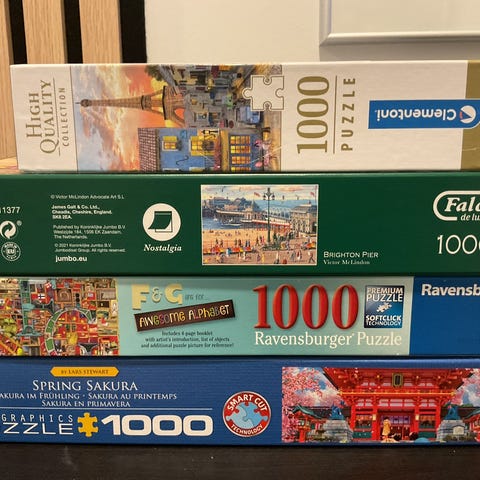 Erilaisia 1000 kappaleen palapelejä.