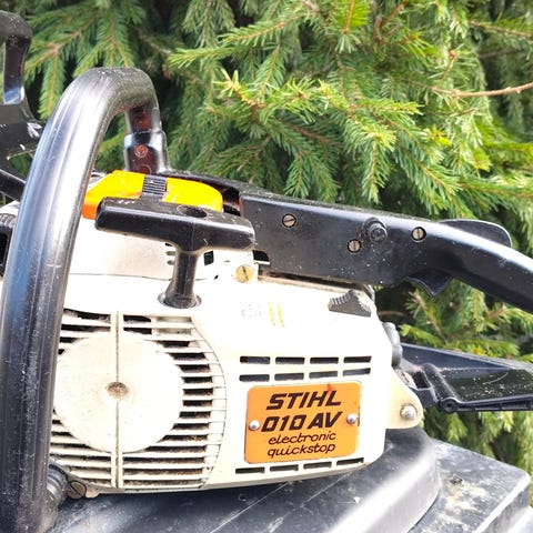 Toimiva pienikokoinen moottorisaha vaikka polttopuu hommiin.