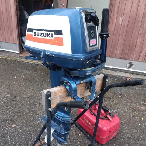 Hyvä ja kevyt pikkumoottori Suzuki 2.2. Paino 12 kg. Vähän nähnyt vettä ja helposti käyntiin. Vesi kiertää ja huollettu, öljyt ,tulppa.