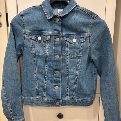 Luonnonvalkoinen, uudenveroinen farkkutakki. 152 cm/12 vuotta. Painonapit.