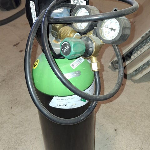 Argon kaasupullo paineensäätimellä