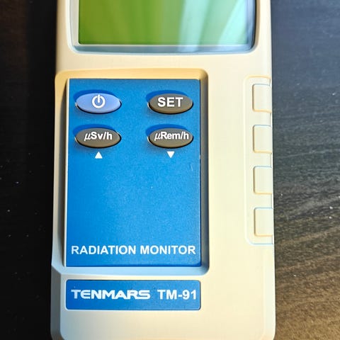 Testattu toimivaksi. Anturi reagoi normaalisti ja mittaa oikein (kuvassa 0,08 µSv/h).