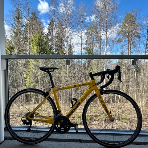 Ultegra 2x11 vaihtajat, Ultegra jarrut, 105 jarru-/vaihtajavivut ja DTSwiss kiekot. Vähän ajetut Continental GP5000 renkaat. FSA-kammet(50/34) ja 11-28 takapakka.