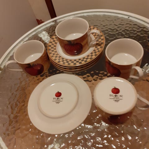 Yhdessä kupissa on lohkeama jalassa (näkyy kuvassa)