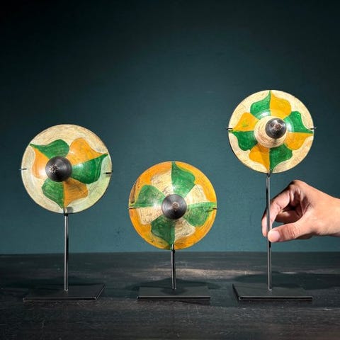 Setti 3 kappaletta Lombokista perinteisiä puisia pyöiväisiä kolikkojaSisältää räätälöidyt metallijalustatErittäin koristeellisia esineitäKorkeudet arvioiden mukaan, mukaan lukien jalusta:Spinning Top Set 1 : Korkeus 21 cm Leveys 6 cmSpinning Top Set 2 : Korkeus 19 cm Leveys 6 cmSpinning Top Set 3: Korkeus 19 cm Leveys 8 cmPaino: 1.000 gHALLINTA OHJE> Yksi tai useampi kuva esittää tyyliteltyä vastaavanlaista esinettä. Tarkkoja myynnissä olevia tietoja varten viittaa muihin kuviin. Mikään tyylitellyssä kuvassa oleva esine ei ole mukana myynnissä.> MAINITTU PAINO SISÄLTÄÄ PAKKAUSMATERIAALIN.TOIMITUS- Tavarasi lähetetään Track & Trace -koodin kanssa DHL Parcelin, DPD:n tai PostNL:n kautta. Seuranta päivittyy Catawiki-eräsi mukaan, kun pakettisi on jätetty postiin.- Tarkista tilauksesi säännöllisesti, ettet saisi lähetyksen palautettuna meille; tällöin ostaja vastaa toisen lähetyksen toimituskuluista.- Espaniaan ja Portugaliin suuntautuvaa seurantaa varten käytä tätä linkkiä ja lisää Catawiki-eräsi seurantanumerohttps://clientesparcel.dhl.es/LiveTracking/HomeEMME YHDI LÄHETYSTÄ!!!Jos sinulla on kysyttävää paketistasi, ole hyvä ja ota meihin yhteyttä Catawiki-viestipalvelun kautta. Yritämme vastata kolmen arkipäivän kuluessa.