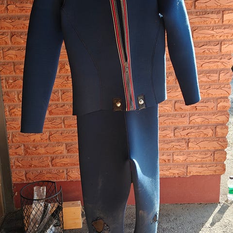 Naisten 8mm paksu märkäpuku. Koko 38. Pientä pukumaa polvissa.