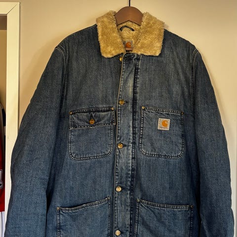 Carhartt miesten takki, koko xXL. Väri sininen ja materiaali nailon. Edessä vetoketju ja suuret etutaskut. Hihansuissa ja helmassa joustavat resorit. Takissa on huppu. Kuvissa näkyy kulumaa ja pieniä jälkiä kankaassa sekä resoreissa. Soveltuu arki- ja ulkokäyttöön viileämpiin säihin. color is navy blue all details is in the photos