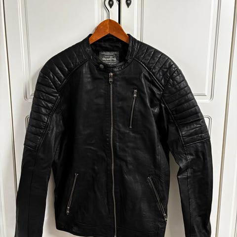 Myydään vähän käytetty musta Jack & Jones Richard lampaannahkatakki. Koko L, kolme vetoketjullista taskua edessä, yksi povitasku, vetoketjut hihoissa, ohut vuori. Takki on pehmeää nahkaa, oikein hyväkuntoinen, täysin ehjä ja vetoketjut toimivat.