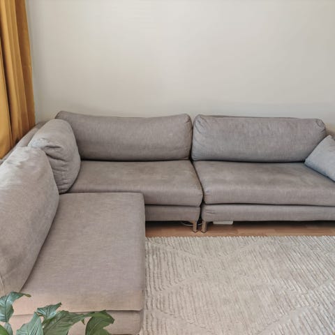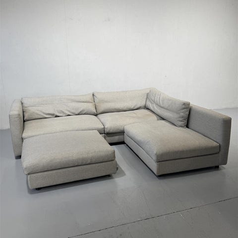 Sohva edustaa modernia skandinaavista muotoilua, joka korostaa yksinkertaisuutta ja toimivuutta. Moduulit voi asettaa eri tyyleihin, irrallinen rahi sekä lukuisia heittotyynyjä mukana. Verhoilut saa irti ja pesuun helposti. Kulumaa yhdessä istuimessa sekä selkänojan tyynyssä, jonkin verran karvaa havaittu (eläintaloudesta). Ovh 8745 euroa.