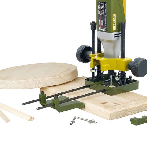 20 mm vakiokaulurilla varustetuille MICROMOT-yksiköille. Loveamiseen sekä uurteiden ja reunojen hiomiseen. Rajoittimen käytöstä riippumaton (enimmäiskoko 150 mm) laite on tarkoitettu pyörivään jyrsintään keskitappia (100 – 400 mm) käyttäen tai vapaalla kädellä. Valmistettu painevaletusta alumiinista ja viimeistelty hiotulla laakeripinnalla. Säädettävä syvyyden hallinta ja iskun esivalinta. Soveltuu myös erinomaisesti pyöreiden osien porausohjaukseen ohjainlevyn prisman ansiosta.