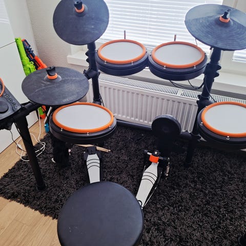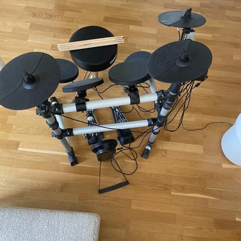 Muutoissa tästä setistä on kadonnut padeja ja telineitä, joten nyt tarjolla pelkkä soundimoduuli. Vaikka tällä on jo ikää reilu kymmenen vuotta, soundit sopivat ainakin minun korvaani ja ovat aivan käyttökelpoisia. Mukaan on tulossa laitteelle sopiva virtalähde.