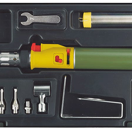 Sähköinen pietsokidesytytin, jossa on turvallinen kaasuvirtauksen päälle/pois-kytkin. Erikseen ohjattava kaasun ja ilman tulo. Herkkien osien kovajuottaminen jopa 1 300 °C lämpötilalla. Kärkien kanssa työskenneltäessä ylin lämpötila on jopa 500 °C. Suuri kaasusäiliö (20 ml) mahdollistaa pitkäkestoisen työskentelyn. Voidaan täyttää tavallisilla sytyttimien butaanisäiliöillä. Sovitinkärjet: suuri vaha/lakkapoistoveitsi puukorjauksia varten, kuuma veitsi paksumpien muovien leikkaamista varten, kaksi puupolttokärkeä (kulma ja tasainen kärki), hitsauskärki, pyöreä suutin kuumailmatyötä varten sekä suutin holkkien kutistamiseen.