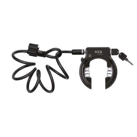AXA, Solid Plus runkolukko 150 senttisellä AXA Newton vaijerilla. Runkolukon ja vaijerin ansiosta saat pyöräsi lukittua paitsi itse runkolukolla, myös lukkoon kiinnittyvällä vaijerilenkillä, jolla voit kiinnittää pyöräsi telineeseen tai muuhun kiinteään pisteeseen. - Mukana 150 cm pitkä riimuvaijeri runkolukkoon sopivalla päällä - Leveys: avattuna 58mm - FA hyväksytty - Mukana 2 avainta - Väri: Musta - Paino: 1070g - Pantakiinnitys runkoon Tilaa pyörääsi nyt jämäkkä ja monipuolisesti suojaava AXA Solid Plus runkolukko Newton vaijerilla!