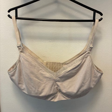 HMn imetyspaita. Vähän väri ehkä pesussa haalistunut, mutta ei niin pahasti kun kuva antaa ymmärtää. Käänteissä kangas kiertää. Voisi oieta pesun jälkeen käsin venyttelemällä.