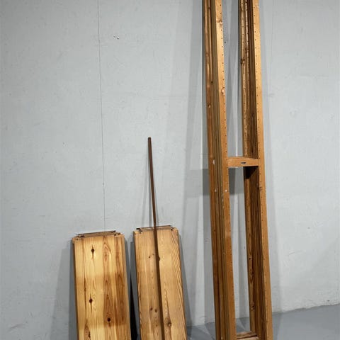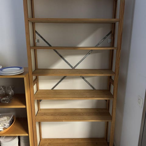 Lundia classic Tikas hyllykkö osissa. Sisältää: viisi korkeaa tikaspalaa 248cm, useita hyllytasoja 30x80, kolme syvempää kirjoitustasoa, 1kpl kirjoitustaso alta vedettävällä tasolla, 3 kpl metallista tukirankaa sekä tappeja.