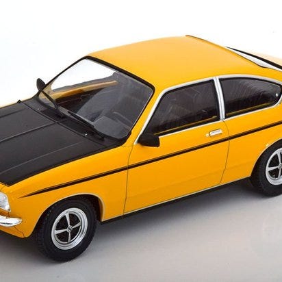 Opel Kadett C SR Coupe vuodelta 1975keltainen/mustamittakaava 1:18Valmistaja MCGOvet ja konepellit kiinnihyvin kaunis yksityiskohtainen keräilymalliuusi ja avattomassa alkuperäispakkauksessaanvakuutettu toimitus maailmanlaajuisesti