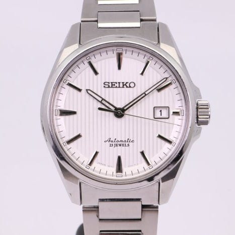 —// KUVAUS //—** Made in Japan **Malli: Seiko Presage SARX013 White Mechanical Automatic watch *(Japan Market Exclusive)Materiaali: Ruostumatonta terästäNÄYTTÖ: Valkoinen viivoituskuviollaLäppä: 40mm (kruunusta pois laskettuna)Soveltuvuus: Ranteen ympärysmitta jopa 18,0 cm. Ei lisäkkeitäAjainta: Seiko 6R15 Automatic movementVaraus: 50 tuntiaToiminnot: Ajanluku, hacking, manuaali- ja automaattikierro, liukuma sekuntiviisari, lumeoivat kädet ja tuntimet, päivämäärä—// PAKKAUS //—Alkuperäinen rasia: kyllä *(Seiko Japan Market Watch Box)Alkuperäiset paperit: Kyllä *(Takuu-kortti ja esite)—// KUNTO //—Käyttö päällä kotelo: Pientä (joitakin hiusviivoja ja pieniä naarmuja kotelon sivuilla.)Käyttö takakannessa: Pientä (näyttötakakansi)Kiteen kirkkauden kulutus: Mitätön (sapphire top)Soittokannen käsi: EiKoneiston pyörimisreiät: Pientä *(Pieniä kulumia kierukan reunalla hiusviivoja/kevyt naarmuja)Kruunun kulutusta: Merkityksetön / PientäRannekello tai hihna (koko edellä mainittu): Pientä (Seiko S/S ranneke. Kevyitä naarmuja linkeissä ja soljessa)Lisäisin hankituille nahkarattaiden kulutus: Ei [nahkalumiset koko 19.0 cm ranteelle]// KUNNON ARVOSTUSSTANDARDI //Ei (Paras) > Merkityksetön > Pieni > Keskikokoinen > Raskas > Vauriintunut (Huonoin)— // KOKONAISARVIO //—Kokonaiskunto: ALuokitusohje:N - Uusi, eikä käytön merkkejä, tai käyttämätön.S - Lähes mint-kunto, minimimerkkejä käytöstä.A+ - Erittäin hyvä kunto, vähän käytön merkkejä.A - Hyvä kunto pienillä käytön merkeillä tai naarmuilla.B+ - Kohtalainen kunto ilmeisillä käytön merkeillä.B - Huono kunto raskaiden käytön merkkien kanssa.V - yli 20 vuotta vanha ja vintage-kunto, ilmeisiä käytön merkkejä.ND - Pelastettavissa oleva kunto, ilman toimivuutta tai huollon tarvetta. Joitakin osia saattaa puuttua.—// TOIMITUSMENETELMÄ //—TOIMITUS: FedEx Economy tai vastaava—[[[ OHJEITA ASIAKKAALLE ]]—[KUVAT]- Kaikki kuvat eivät ole retusoituja (paitsi sarjanumerot, jotka on piilotettu turvallisuussyistä). Mikä tahansa kuva, joka ei ole kuvaus, mutta joka näkyy kuvissa, katsotaan kuvan kuvauksen mukaisesti. Kuvat puhuvat puolestaan, joten pyydämme tarkastelemaan kuvia huolellisesti ennen tarjouksen antamista, koska ne muodostavat olennaisen osan kuvausta. Arvostan asiakassuhdettani, joten en halua aiheuttaa pettymystä vastaanotettaessa tuotetta.[TARKKUUS]- Tarkkuus testataan jokaisessa kellossa vaakasuorassa asennossa (näytön etuosa ylöspäin) täysin ladatun voimavaraston tilassa ja katsotaan tyydyttäväksi ajan pitämiseksi ennen myyntiinlähtöä. Joitakin tekijöitä, jotka voivat vaikuttaa tarkkuuteen, ovat ranteella vietetty aika, käsivarren liike ja jännitys virtakautta. Yli 10 vuotta vanhoilla kelloilla voi olla suurempi tarkkuusero ja epäjohdonmukaisuus mekaanisen kulumisen vuoksi.[AITUUS]- Kaikki myymäni kellot ovat aitoja. Yritän merkitä tunnistettavat aftermarket-osat parhaani mukaan. Arvioi tuotetta kuvan mukaan, koska kuvat ovat ottettu todellisesta tuotteesta, jonka tulet vastaanottamaan. Kirjallinen kuvaus on vain avuksi, kun kuvat eivät näytä vikaa täydellisesti. (paitsi uusista tuotteista, joista kuvat voivat olla peräisin aiemmista listauksista).[KELLON HOITOTAVAT]- Kelloa ei suositella käytettäväksi suihkussa tai kylpelissä. Kuuma vesi ja saippua voivat heikentää rajoittimiä kellon kumikannasta ja aiheuttaa vuotoa. Sumun muodostuminen (vesihöyry) tiheydel