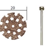 Paksuus n. 2 mm. Puun leikkaamiseen ja profilointiin, CFK, GRP, kumi, silikoni. Jäähdytysreiät vähentävät kuumenemista. Akseli Ø 2,35 mm.