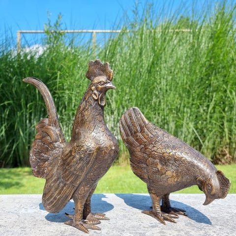 Figuriini - Chicken and rooster - Pronssi