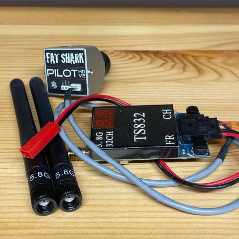 Esileikatut paikat kameralle, servolle, akulle, vastaanottimelle ja antennille