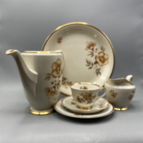Hakusanat: aterimet, posliini, astiat, kaadin, lautaset, lautanen, arabian, keräily, kahviastiasto, arabia, design kuppi muki kupit lautanen astiasto kahviastiasto tassi asetti lautaset kupit mukit, vintage, kultareunus, kahvi, klassinen, kupit, Paketoitava, kuppi, Valmistaja, muki, myrna, aterin, kukkakuvio, tarjoilulautanen, suomalainen design, keramiikka, vintage huonekalut