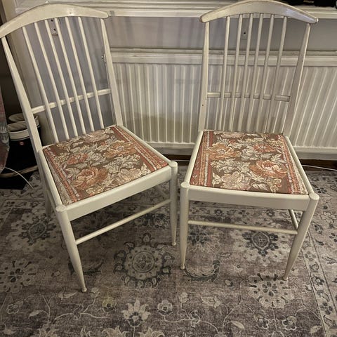 Hakusanat: ruokatuolit, pinnat, valkoinen, huonekalu, huonekalut, Tuoli, kalusteet, design, design huonekalut, suomalainen, skandinaavinen, tuolit, Valmistaja, istuin, kukkakuvio, selkänoja, istuimet, sisustus, käytetyt huonekalut, jalat, naarmut, ruokatuoli, kuluma, penkki, asko
