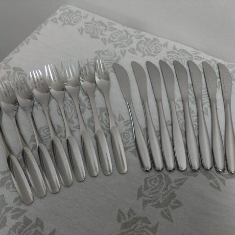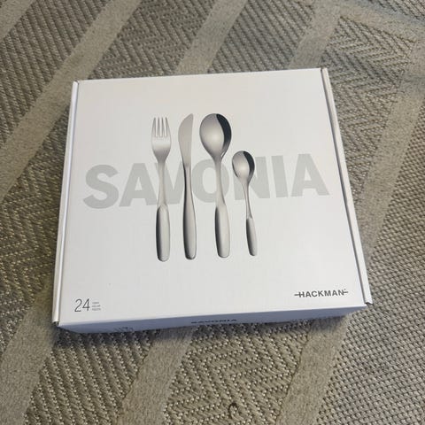 Hakusanat: Valmistaja, suomalainen muotoilu, 24 osaa, aterin, aterimet, veitsi, veitset, lusikka, lusikat, hackman, haarukka, haarukat, savonia, Paketoitava