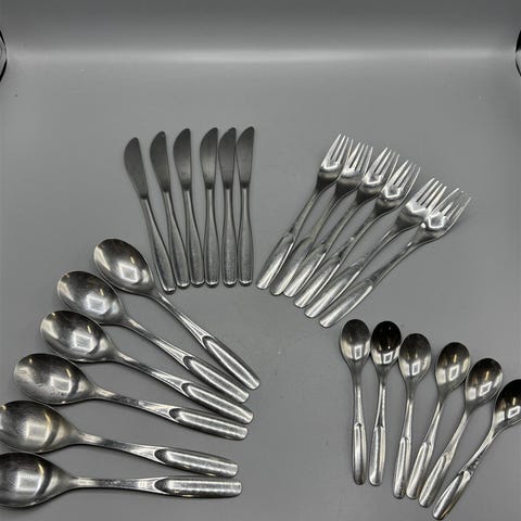 Hackman Savonia aterimet, yhteensä 24 osaa. Sisältää veitsiä, haarukoita ja lusikoita kaikkia osia 6 kpl. Valmistettu Suomessa.
