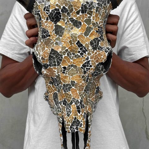 lehmäkalman pää lasin alla. Kallo on kokonaisuudessaan käsin koristeltu suurella huolella. Se on epätavallinen, koriste-esine.LÄHESITTÄVÄT MITATPituus: 54 cmLeveys: 46 cmMÄÄRITELTÄVÄ NOTE:- Olemme lisänneet muutaman kuvan käsityöläisistämme työssään antamaan käsitystä siitä, miltä mosaiikkikallon luomisen prosessi näyttää.- MÄÄRITETTY PAINON IKKUNAA KOSKEVA TIEDOKSI: PAINOTUS VIITTAA JOHTOAIKAA.VÄITEKSI- Taakse on kiinnitetty kiristysnyöri, jonka avulla kallo voidaan asentaa seinälle.- Sarvet irrotetaan kuljetuksen ajaksi ja on helppo kiinnittää uudelleen.- Sarvet ovat aina pakkauksen pohjalla, kallon alla. Varmistathan, että poistat sarvet ennen pakkauksen heittämistä pois.- Koska kyseessä on luonnonkallo, siinä saattaa olla joitakin luonnonmukaisia halkeamia, rakoja tai puuttuvia hampaita. Tämä on normaalia. Katso kuvat.- Kallomme on puhdistettu ammattimaisesti, mutta hammasrangoissa saattaa toisinaan esiintyä pieniä värimuutoksia. Tämä on luonnollista ja normaalia, eikä siihen ole paljon mitään tehtävissä. Katso kuvat.NAKOTE- Tuote lähetetään Track & Trace -koodilla DHL Parcelin, DPD:n tai postNl:n kautta. Seurantatiedot päivittyvät Catawiki-luotettavaan, kun pakettisi on jätetty postiin.- Tarkista säännöllisesti, ettet saa pakettia palautettuna meille, jolloin ostaja on vastuussa toisen toimituksen postikuluista.- Seuranta Espanjaan ja Portugaliin käytä tätä linkkiä ja lisää Catawiki-luotasi seurantanumerohttps://clientesparcel.dhl.es/LiveTracking/Home- EMME YHDENNA TOIMITUSTA...- Jos sinulla on kysyttävää paketistasi, ota meihin yhteyttä Catawiki-viestipalvelun kautta. Yritämme vastata 3 työpäivän kuluessa.