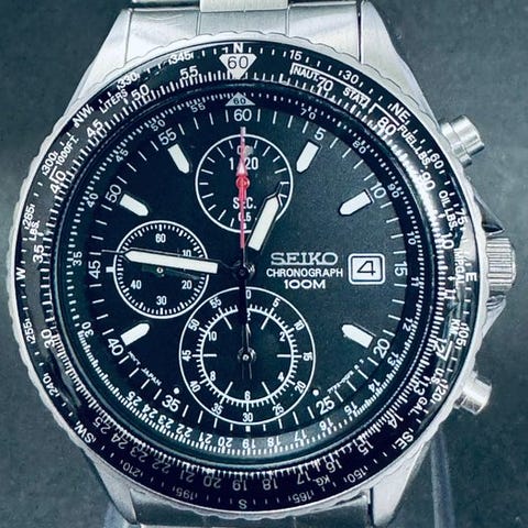 DescriptionCase: 38 mm (diameter excluding crown) x 43 mm (lug to lug)Dial: White dial with black sub-dials and white/orange handsDate: WorksChronograph: WorksCrystal: Hardlex glassStrap: Original Seiko braceletLug width: 20 mmLength including watch head: 18 cmService history: UnknownRemaining battery capacity: Unknown. Insured shipping via the following channels:Local shipping: Local registered postal mailInternational shipping: DHL ExpressIMPORTANT NOTES!! PLEASE NOTE BEFORE BIDDING!!1. The watch is sold on an as is condition. Unless otherwise stated, no warranty is provided and no claims for timekeeping accuracy, water resistance etc. will be allowed or entertained.2. The buyer shall be responsible for additional customs and/or value-added taxes that may be levied by the tax authorities of each country. Therefore, please check with the relevant authorities if you are unsure and bid accordingly. In the event the buyer fails to take delivery due to non-payment of taxes payable, the buyer shall still be liable for all shipping, customs clearance and other admin costs incurred.3. In the event of cancellation at the buyer’s discretion after shipment, the buyer shall be liable for all return shipping charges, admin and custom charges payable to ship back and re-import the watch.4. International transit (excluding customs clearance and last mile delivery) usually takes up to 2 weeks but may take longer depending on the country and location, public holidays, war situation in Ukraine, global pandemic situation and so on.5. Please note also that we have no influence or control over how fast the customs authority of each country processes the parcel upon arrival in your country.