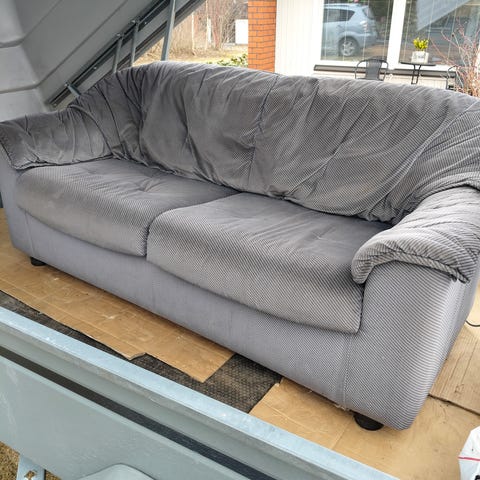 Siisti, hieman normaalia kulumista kankaassa ja istuessa hieman antaa myöten.