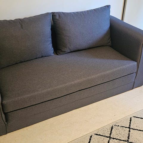 Myydään tumma kahden istuttava vuodesohva. Kts. kuvat.