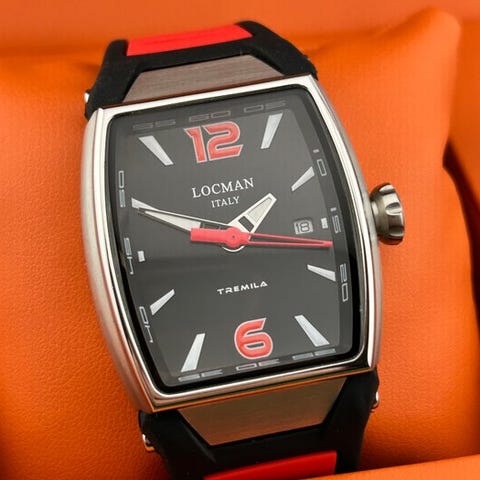 Merkki: Locman Malli: Tremila Liike: kvartsi Kotelon koko: 38 mm ilman koronaa x 40 mm ilman lappeita Rannekkeen pituus: yhteensä 22 cm Solki: logolla varustettu Kellotaulu: musta Kruunu: logolla, ruuvikiinnitteinen Takakansi: ruuvikiinnitteinen, titaania Kunto: Uusi Virallinen LOCMAN takuu Varusteet: Täysi setti