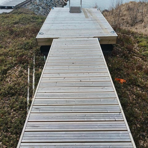 Kestopuusta tehty ponttoonilaituri(T-malli)pääty ja