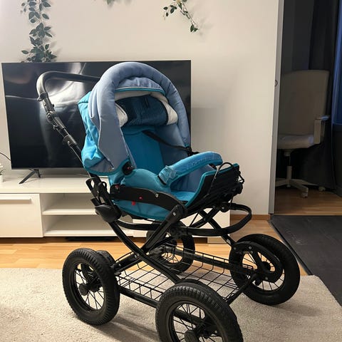 Myyn lastenrattaat. Mukana tulee kuvassa näkyvä sadesuoja.